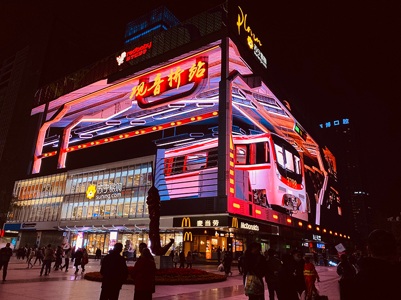 乐天使的户外“裸眼3D”显示屏在国内火速串红,成为国内城市新地标,让“裸眼3D”显示屏再次走到了产业界和社会大众的聚光灯下。乐天使推出的重庆“亚洲之光”裸眼巨幕解决方案,通过“特殊的屏体设计+创意十足的视频素材”结合,兼顾建筑美学并与商圈环境融为一体,一展都市繁华的同时,更将行人的视野处于最佳观看区域,带给目标受众更具沉浸式的体验。