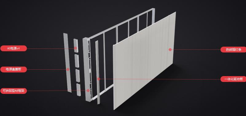 4.室内梁采用钢丝绳吊装,室外用与屏体颜色一致的钢管装饰。悬挂式安装室内可以采用壁挂式安装,要求在墙体实体或在悬挂处有混凝土梁。室外安装主要是依靠钢结构,对显示屏面积和重量没有限制。