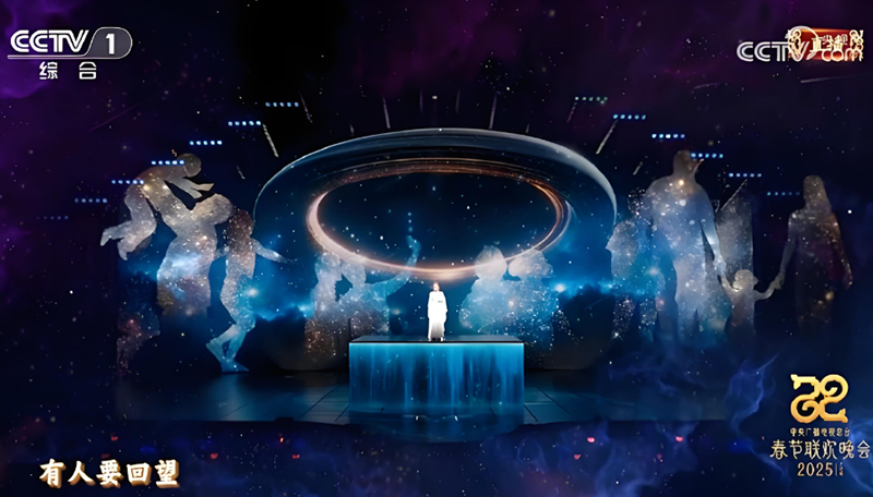 春晚自1983年央视首次举办以来,屏幕技术的应用也经历了从无到有,从简单到复杂,从固定到机械移动,从单屏显示到“VP+XR”沉浸式超高清显示的巨大变革。2024年,春晚创新引入VP电影制作模式,打造“XR+VP”超高清制作系统。通过动态分镜预演、虚实光影联动等全新拍摄手法,演绎出“飞龙在天”的磅礴气势,首次在演播大厅部署沉浸式舞台交互系统,为观众带来“人景合一”的沉浸式感受。2025年的总台春晚舞台更是将“机械升降屏、裸眼3D、虚拟现实、超高清视觉投影”等技术应用的淋漓尽致,打造一个变幻无穷、层次丰富的“如意”空间,为观众带来更加惊艳的观看体验。舞蹈《喜上枝头》汲取“喜鹊登上枝头”的美好寓意,运用舞台机械结构,配合垂幕、投影和地屏,将舞台围拢成巨幅的国画卷轴,寄托了人们对美好生活的向往与期许。