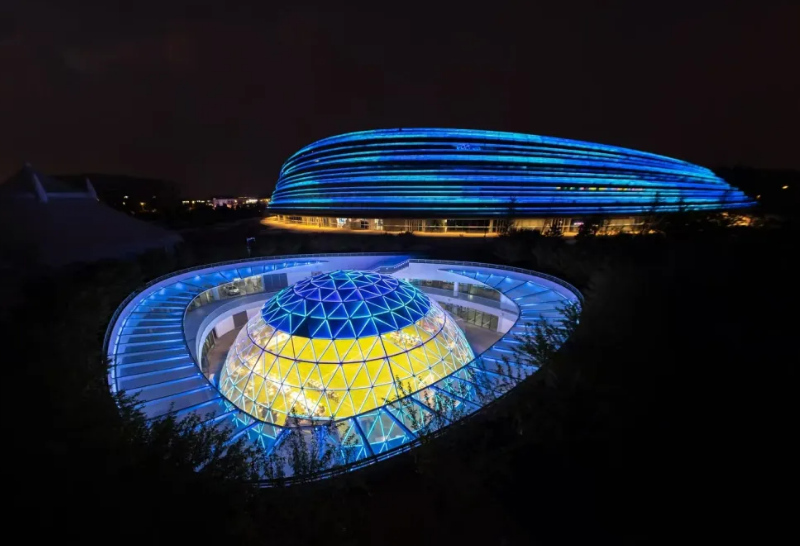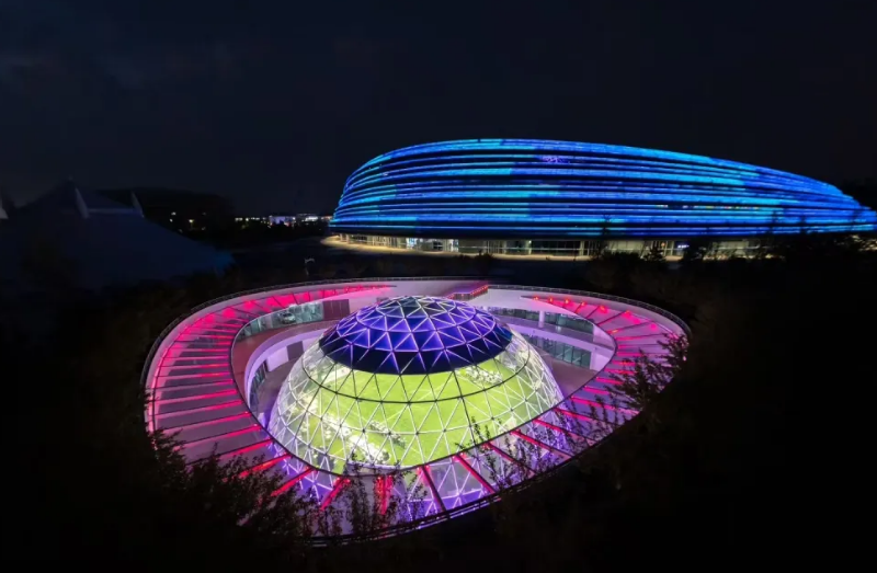 作为世界人形机器人运动会赛训基地,同时也是全球首个人形机器人赛训基地,“熊猫眼”于7月30日晚正式亮灯启用。乐天使为其穹顶打造环形LED彩光带,绚丽光影从红到紫渐次过渡,点亮京城夜空,为机器人团队的备赛工作提供全方位视效保障,助力他们以最佳状态迎接挑战。此次应用的环形LED彩光带,采用乐天使自主研发技术,可完美贴合穹顶弧度,呈现出流畅、均匀的视觉效果,其高亮度、高对比度的显示特性,即使在夜间也能清晰呈现色彩变化,营造出极具科技感和未来感的氛围。
